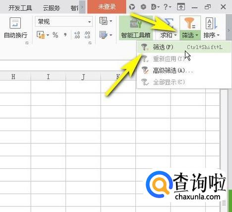 鼠标再移到菜单栏中,如图所示,点击:筛选