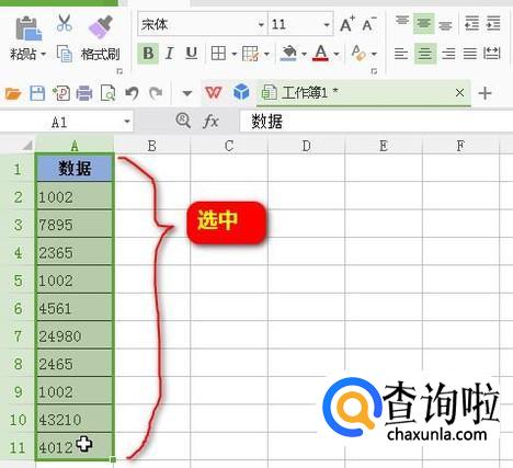 以下图中的数据为例演示操作方法。先把所有数据选中。