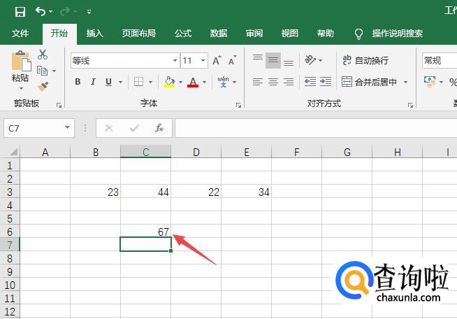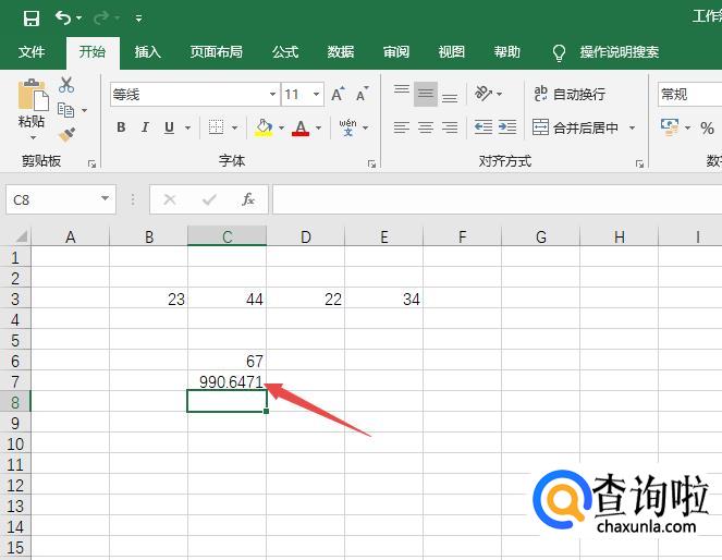先打开电脑上面的excel,然后在表格内输入一些数字,之后选中图示中的单元格;
