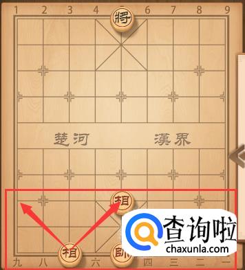 红方为“相”,黑方为“象”。它的走法是每次循对角线走两格,俗称“象飞田”。相(象)的活动范围限于“河界”以内的本方阵地,不能过河,且如果它走的“田”字中央有一个棋子,就不能走,俗称“塞象眼”。