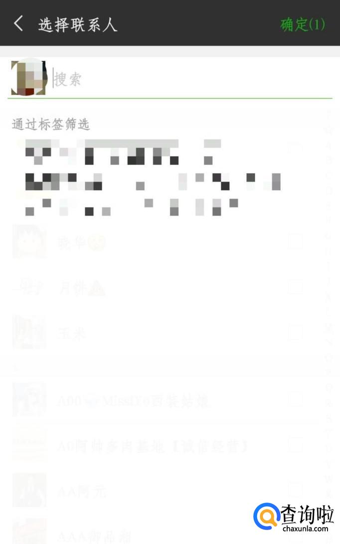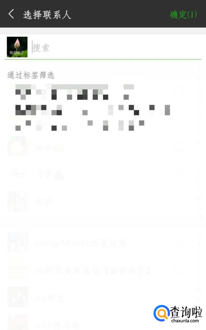 点击后面的“+”号就可以开始拉人进来了。然后搜索想要进群好友的名字,选择后面的方框打“勾”,选择了之后可以继续加人,重复上一个步骤就行了。