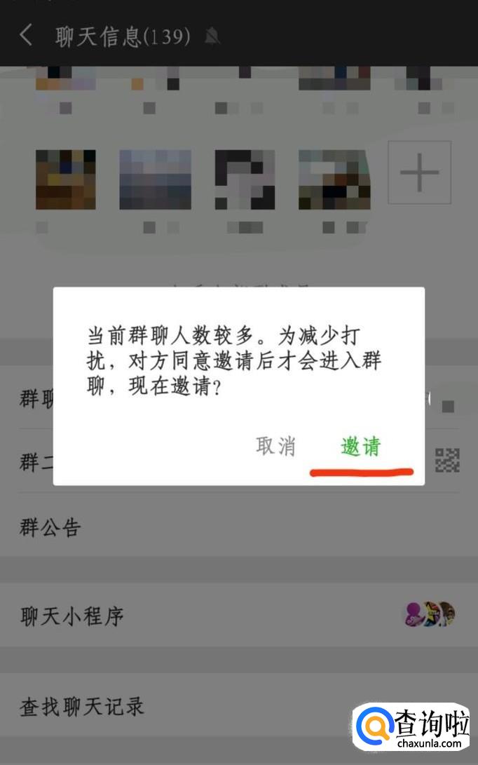 重复拉人进群的步骤,可以看到大群会有个验证,需要被邀请人同意之后才可以入群,点击“邀请”就可以了。
