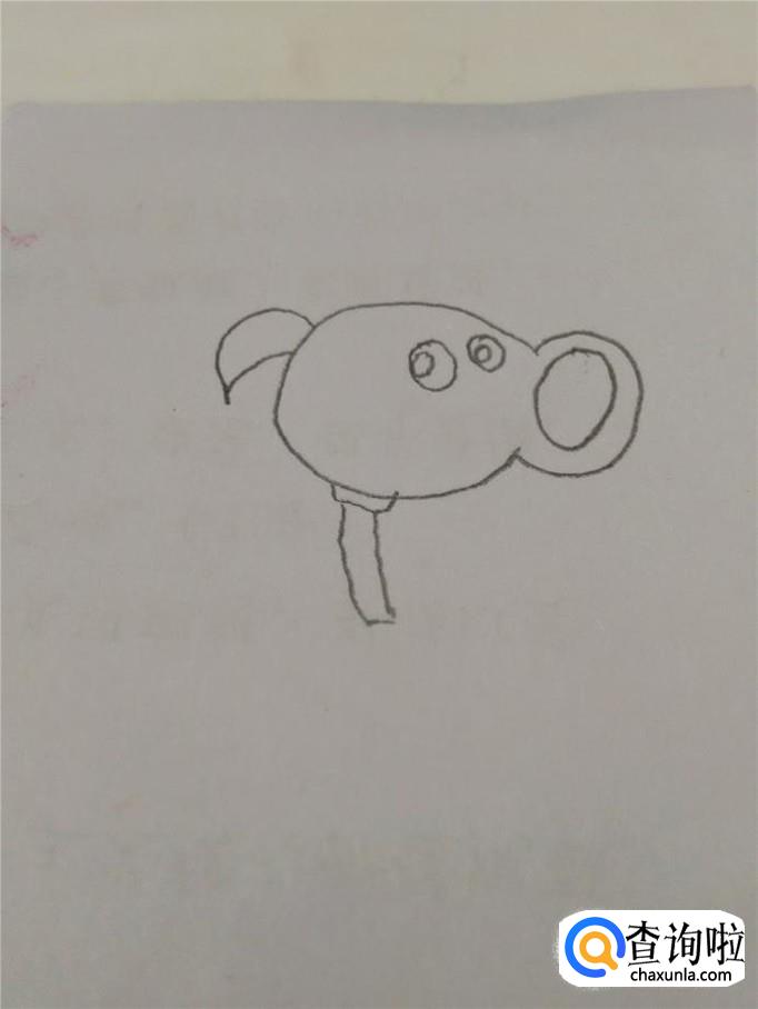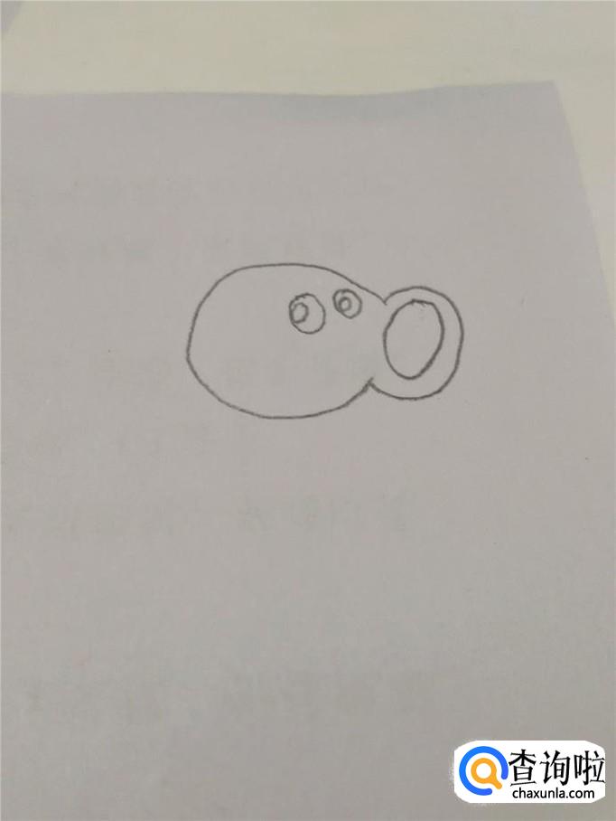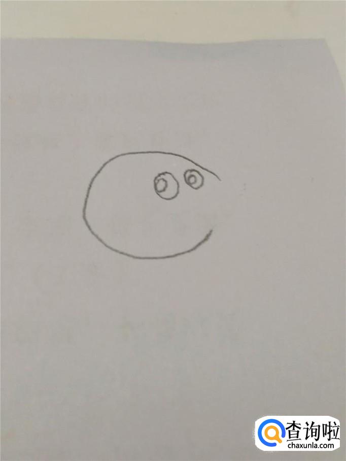 在圆形的右上方画两个椭圆形,表示眼睛,在眼睛里面画两个小圆,表示眼珠。