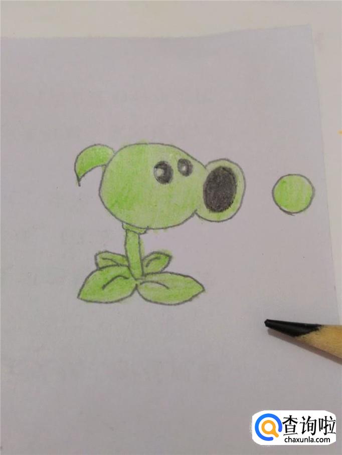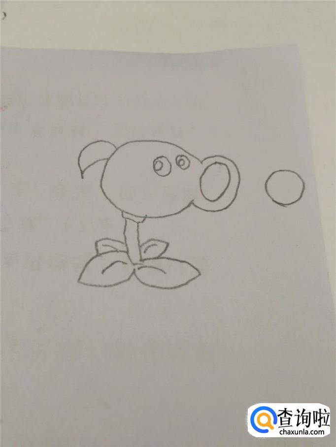 在嘴的右边画一个圆形,表示射出去的一个豌豆。到此,轮廓就画完了。