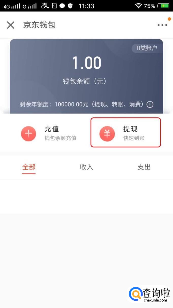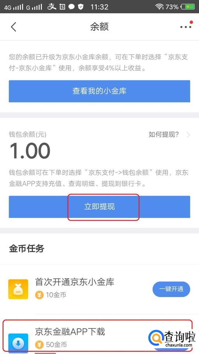 点击“立即提现”,界面就转到“京东金融”app的“京东钱包”界面了(如果手机上没有的话,需要安装)