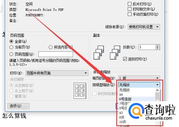 在下拉菜单中即可选择相应的尺寸,如图所示。