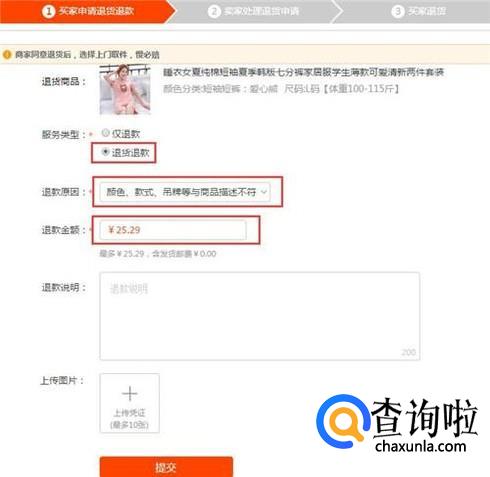 然后服务类型勾选“退货退款”,再选择退款原因和金额,然后点击“提交”。提交后等待商家“同意退货退款”。你再把商品给快递回去,商家收到商品后,把货款退给你,这样就完成了淘宝上的退货退款流程。