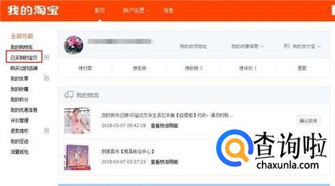 然后点击“我的淘宝”,进入到淘宝页面,点击左侧方,“已买到的宝贝”