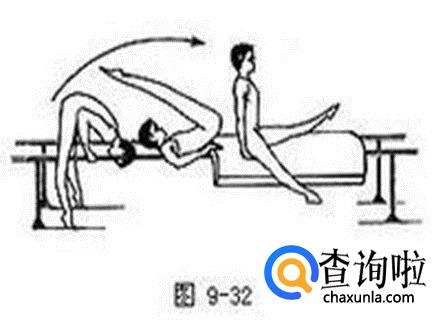 前滚翻成分腿坐。这个动作是双杠翻滚练习的典型范例。动作要领: