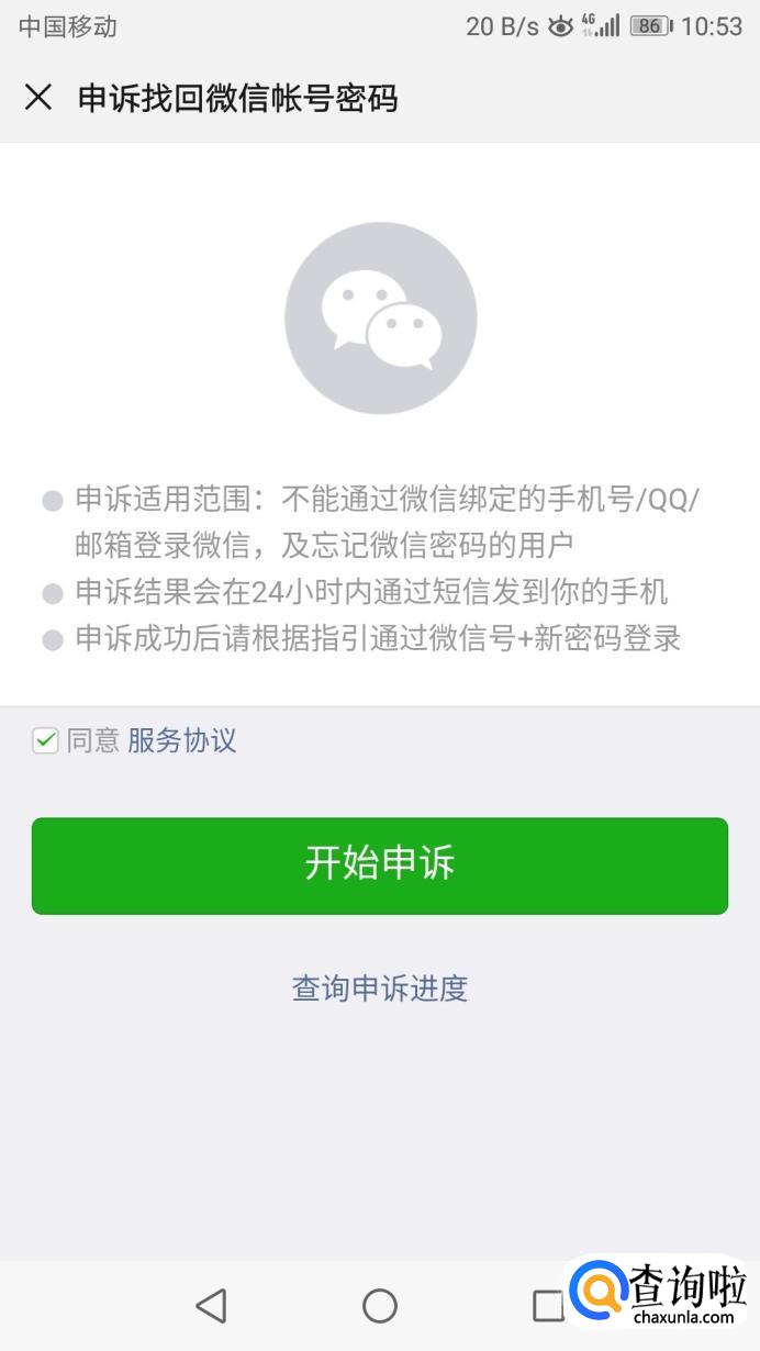 然后跳转界面,勾选同意服务协议,点击开始申诉。