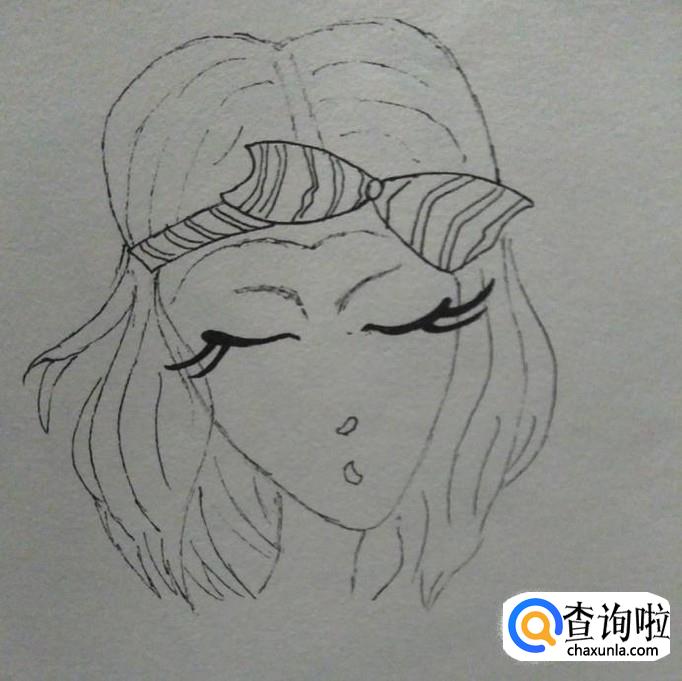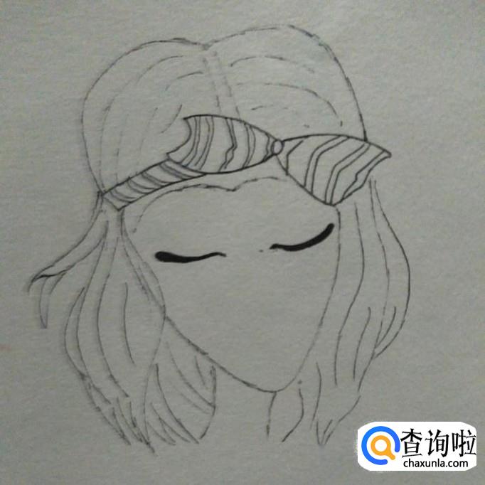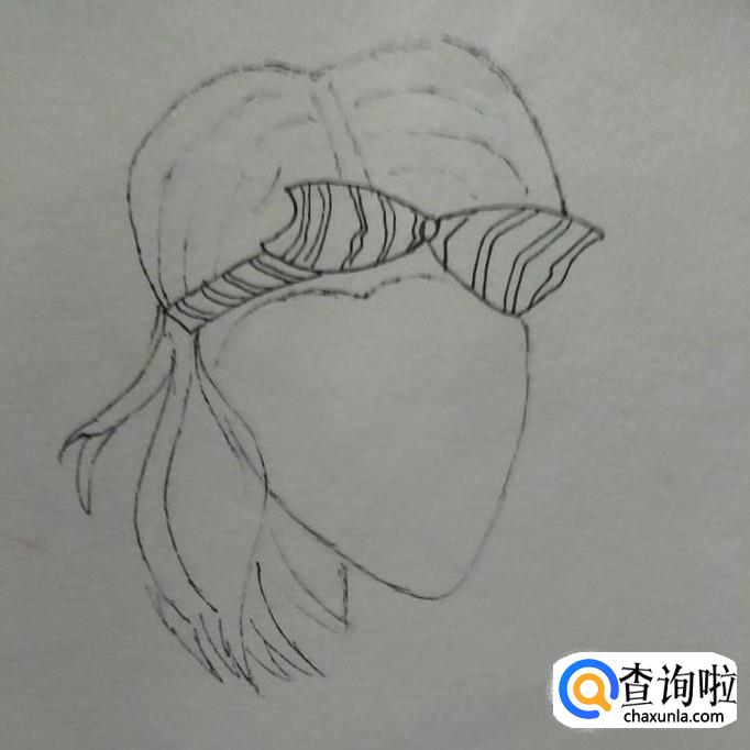 然后,我们以蝴蝶结的左右边界为界,画出蝴蝶结上方的头发,到此,一个御姐的头顶就画好了