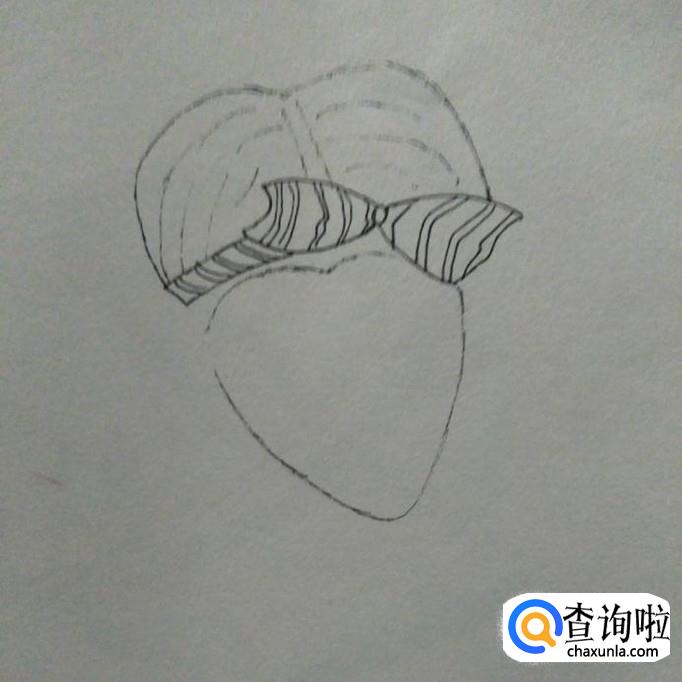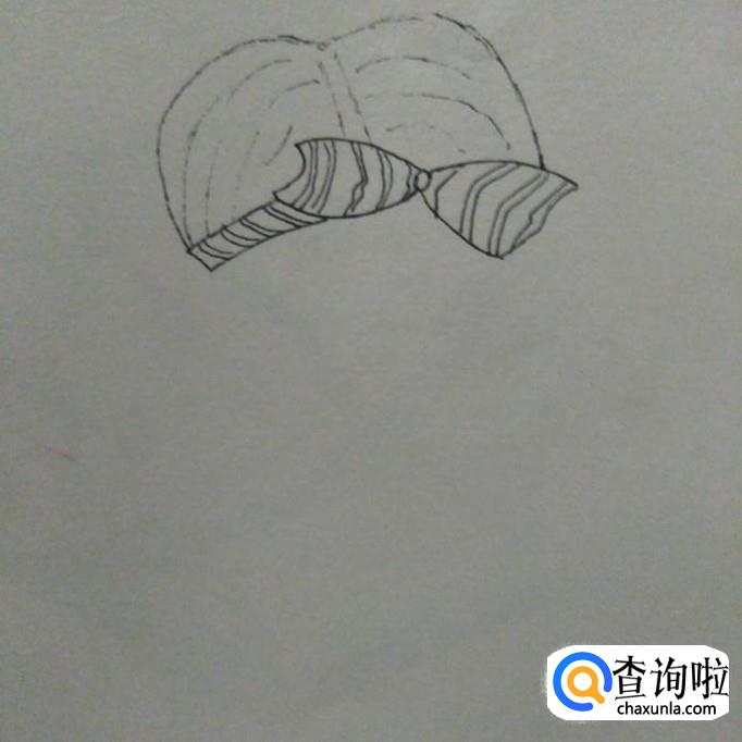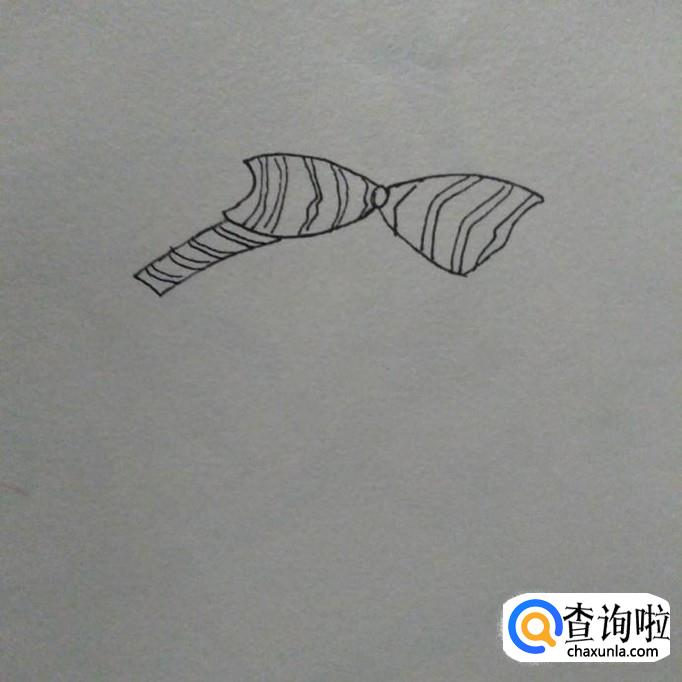 接下来我们在蝴蝶结上画出一些条纹,然后在蝴蝶结的左边画出一个长方形的小结,小结上同样画上一些条纹,作为束发带