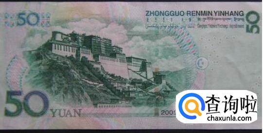 50元人民币纸币背面景观是:布达拉宫(西藏拉萨)。
