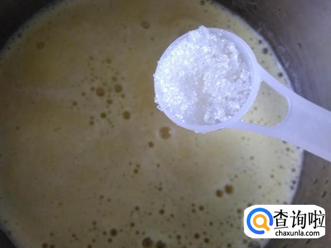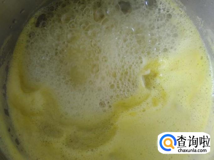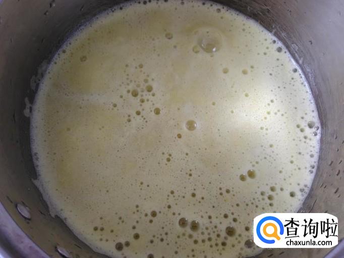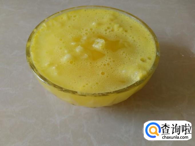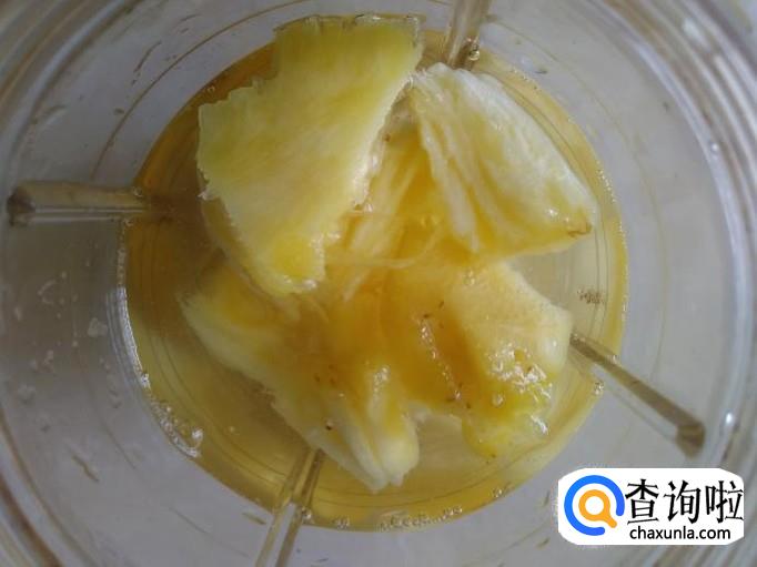 菠萝切成小块,放进打浆机加适量的水打成果汁。