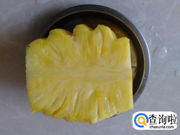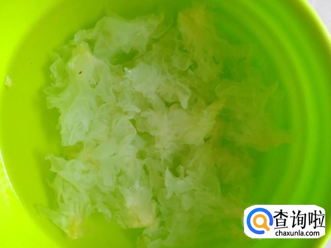 菠萝去皮,然后用盐水泡几分钟,雪耳用清水泡发,然后撕成小片。