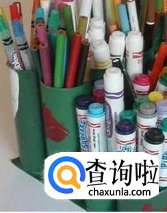 收集若干个卫生纸卷芯,大小高低随意。然后把它们全部立在一起用胶水粘合。可以先用颜料上色或者用彩纸包在卷芯外面,这样更美观。然后一个多功能笔筒就完成了,拯救你乱糟糟的书桌吧~