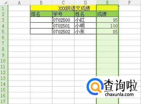 接着全选成绩这一列,如下图所示。