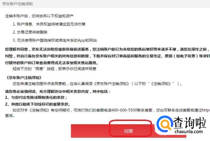 点击注销申请后,必须点击“同意”注销须知,注销之前应该阅读一下,一旦注销了账户将被清空。