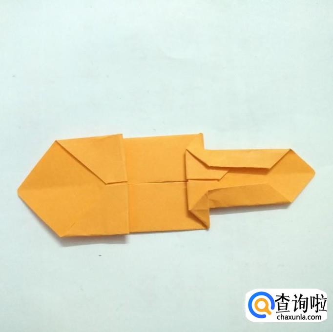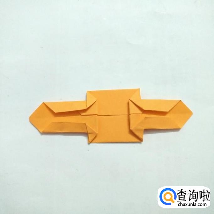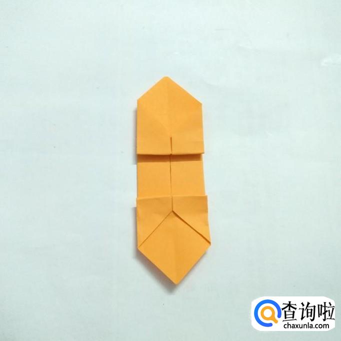 先把折纸沿对角线对折后打开,然后将两侧折向对角线。