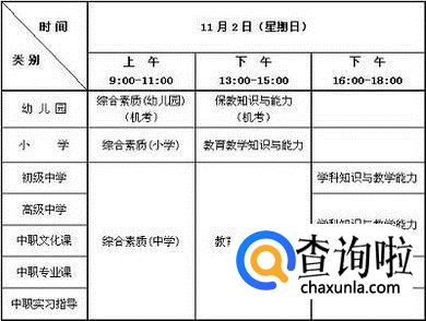 幼儿教师:综合素质、保教知识与能力、所选择的科目(如化学、英语)、面试