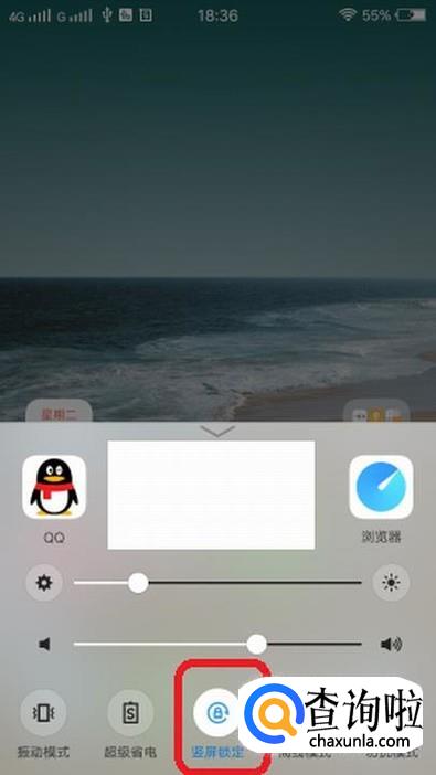 弹窗底部有一行按钮,从右往左滑动,寻找“竖屏锁定”,如果没找到,就点击如图所示“…”符号。