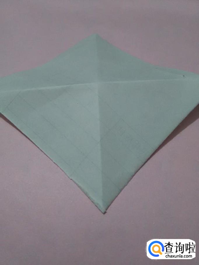 将正方形一个角向对面折,折成三角形。