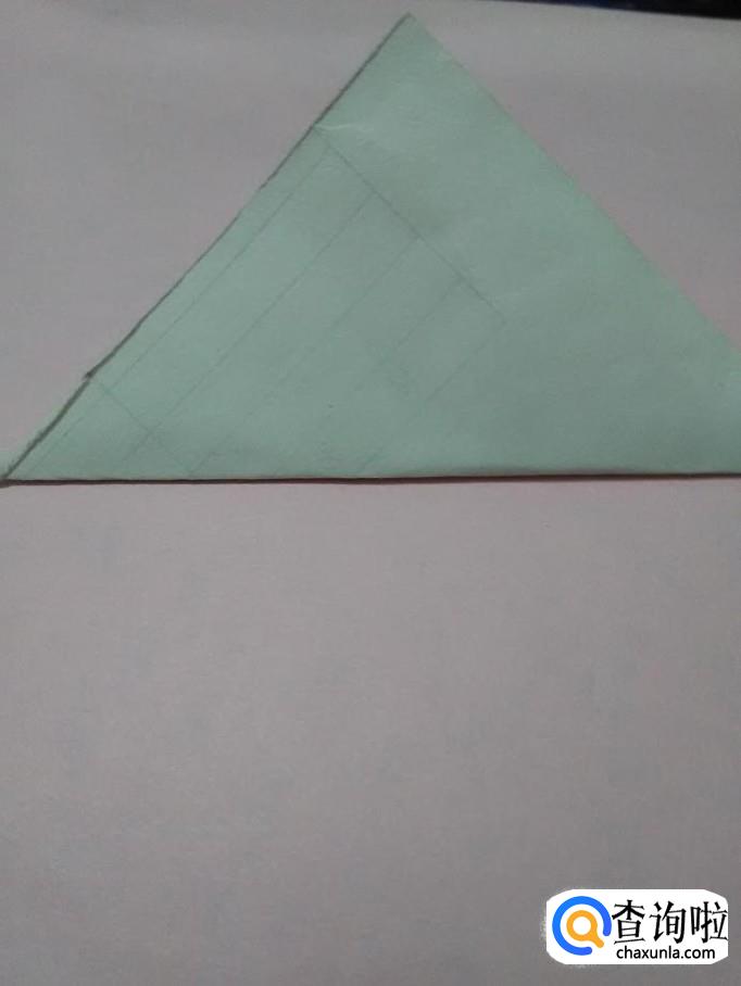 将三角形两侧的角从内侧向中间折,折成下面的三角形。