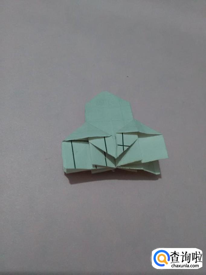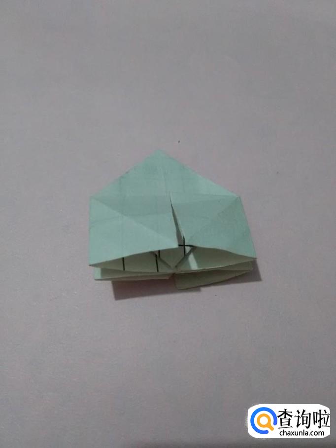 把中间的两个小角向两侧撑开,反面的两个小角也向两侧撑开。