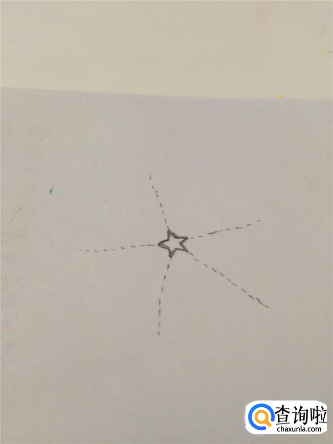 从五角星的五个角往外延伸画五条虚线。