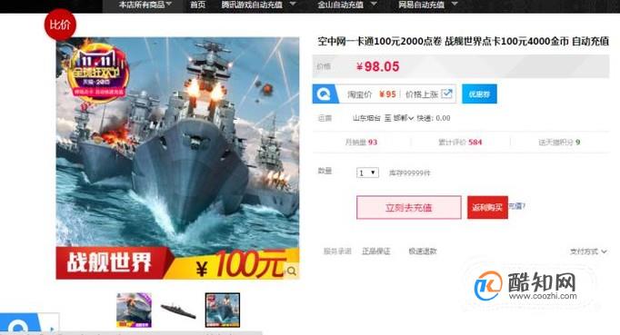 点击进入店铺,选择“立刻去充值”,进入充值页面,这里选择的是充值100块。