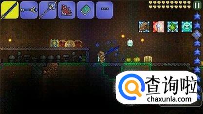 然后,建立战斗平台,准备链球或者长矛,从上攻击。