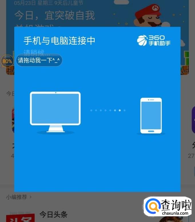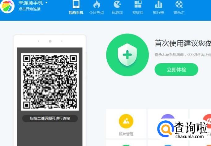 对360手机助手进行安装后,会出现如下图,打开手机微信进行扫描