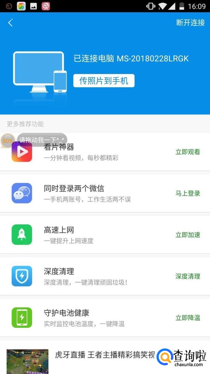 下载成功后,打开360手机助手手机版,搜索栏旁边有个扫一扫的按钮,点击扫描电脑上的二维码,会出现电脑与手机连接的界面