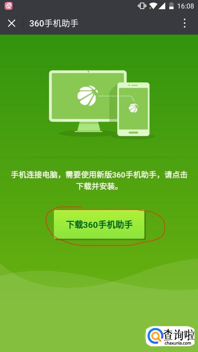 扫描微信上出现下图,点击下载手机助手,按照提示进行下载