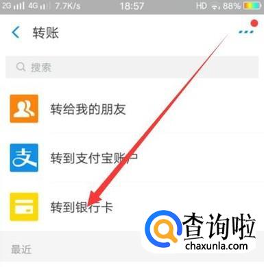 进入之后,选择“转账到银行卡”,如图所示。