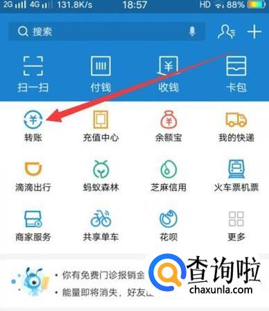 进入之后,点击“转账”,进入下一页面,如图所示。