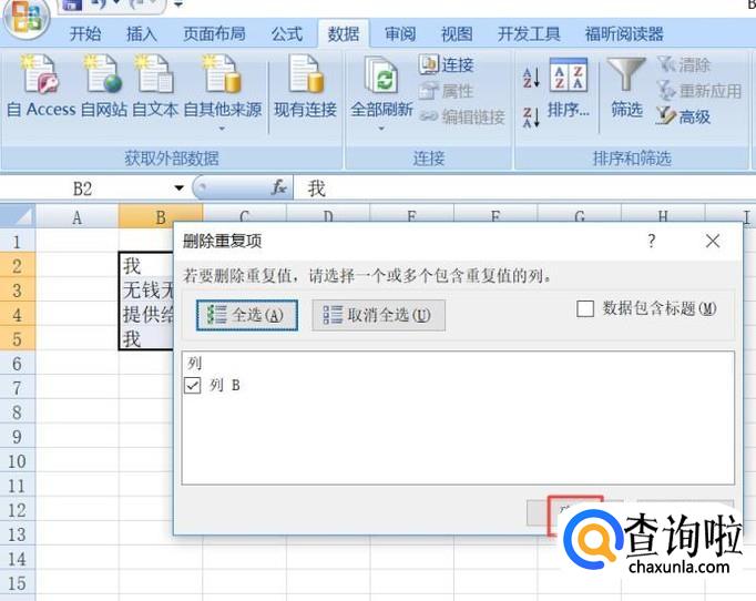 然后我们点击工具栏中的数据,之后我们点击删除重复项;