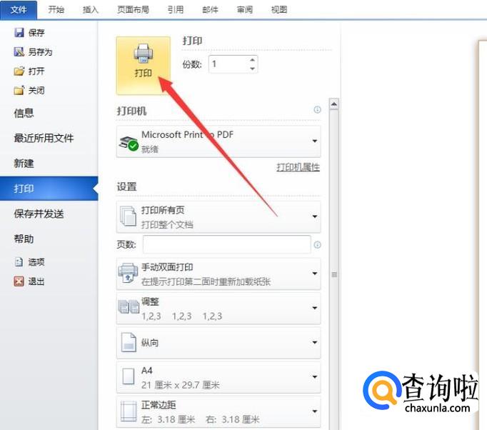 打开之后单击左上角的文件,然后在左边的选择框里可以看到打印选项,单击打印选项