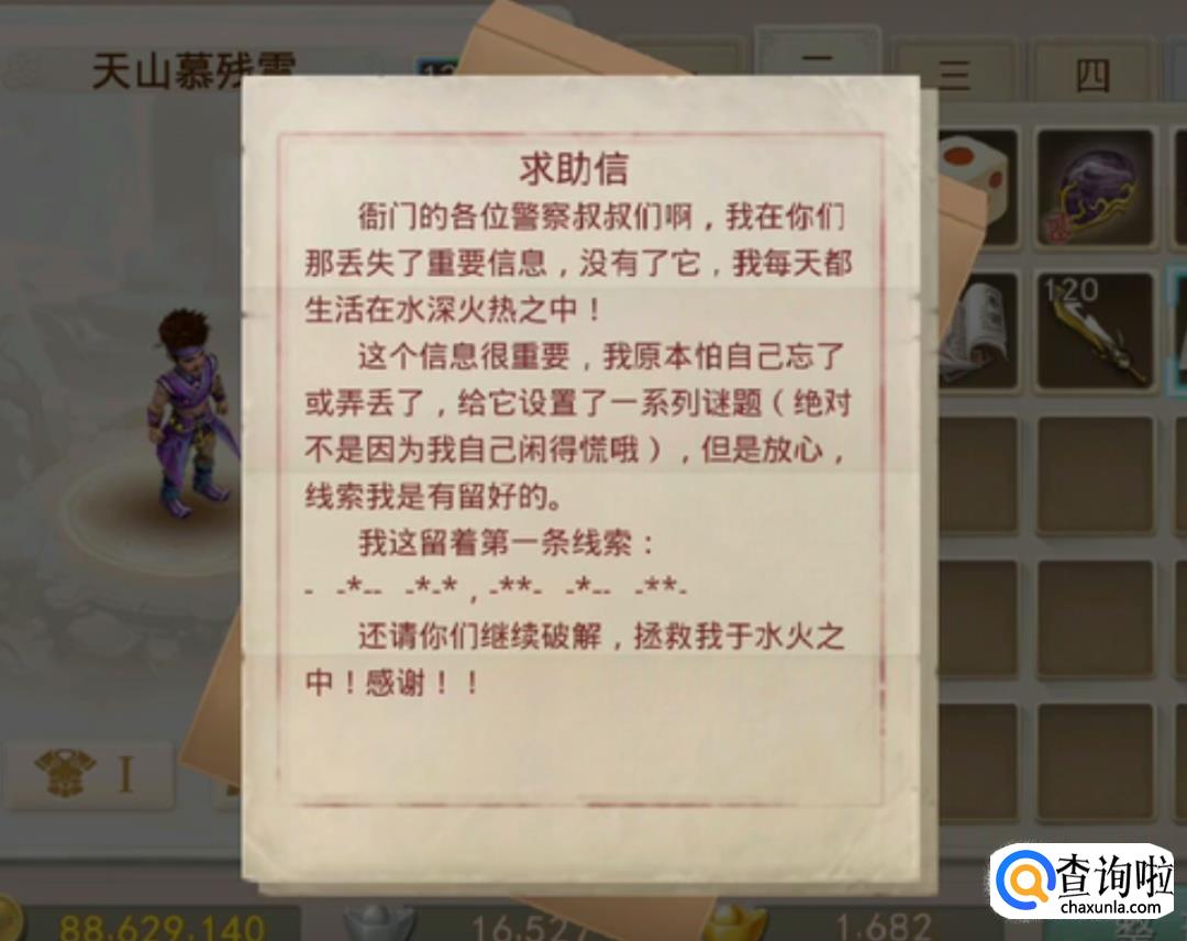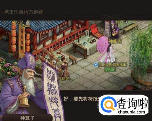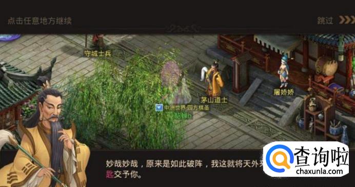 游戏通过后,给了一个新的任务盒子,但没有钥匙无法打开。去天墉城茅山道士处继续任务。