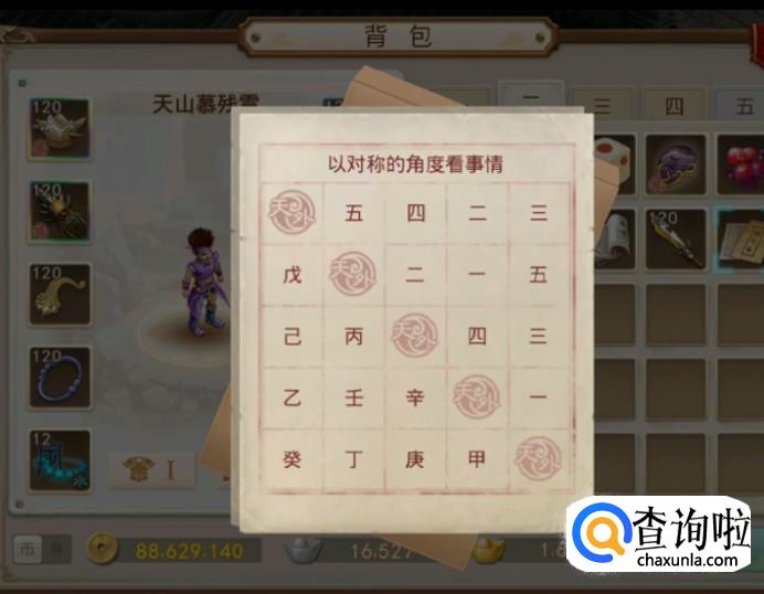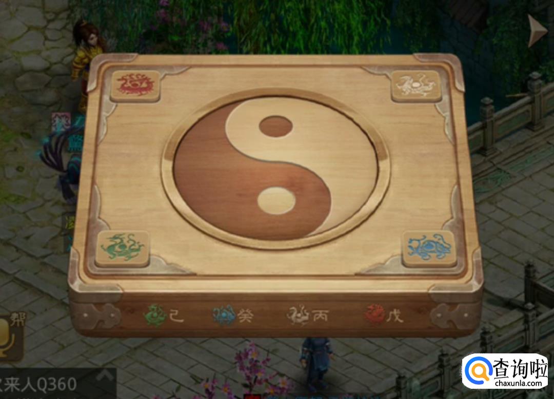 在逍遥仙这里获得一张棋盘,先按棋盘图案对应出天干字,如红色朱雀图案对应癸。