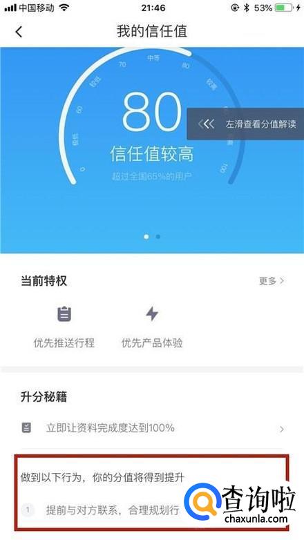 你还可以通过提前和司机联系好,合理规划自己的行程避免取消订单的情况发生,也是能够提升自己的信任值的。