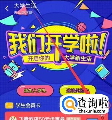 进入之后,点击图示位置,进入大学生认证页面,如图所示。