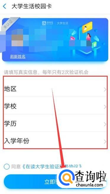 进入之后,填写好学校的相关信息,点击立即验证,进入下一页面,如图所示。