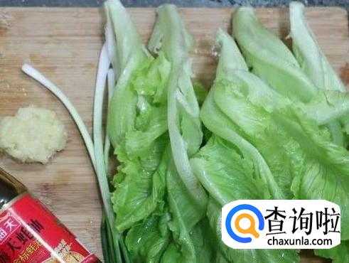 生菜洗净后,控干,再准备葱、蒜、蚝油。葱和蒜切成末。