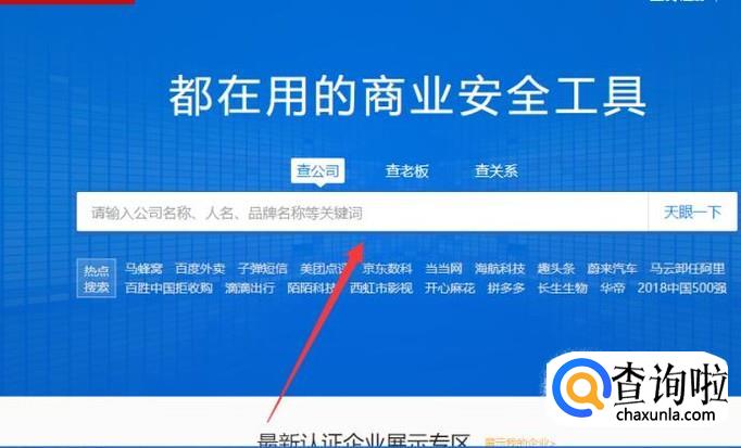 进入之后,在图示位置输入所要查询的公司名称,点击“天眼一下”,如图所示。