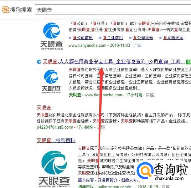进入之后,搜索“天眼查”,点击并进入,如图所示。
