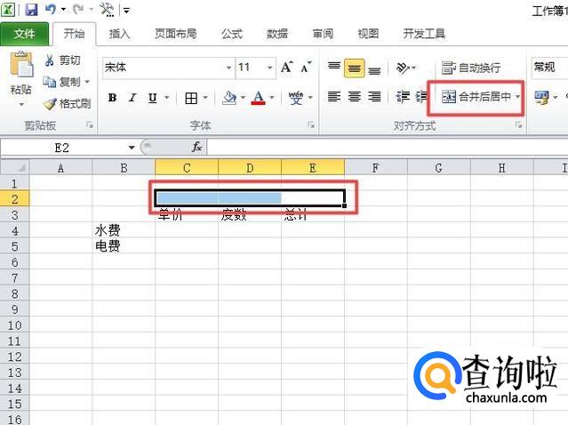 然后我们选中图示中的单元格,之后点击合并后居中;