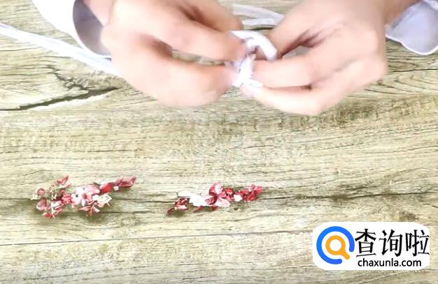 将两个圈的尾部捏在一起,然后穿过这两个叠在一起的圆。