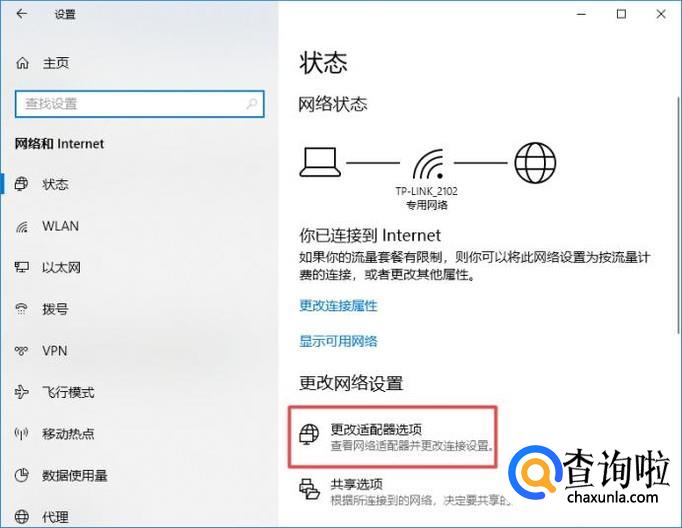 弹出的界面,我们点击更改适配器选项;