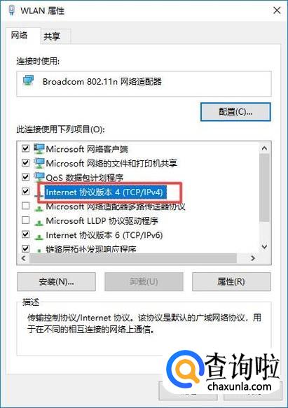 弹出的界面,我们点击Internet协议版本4;